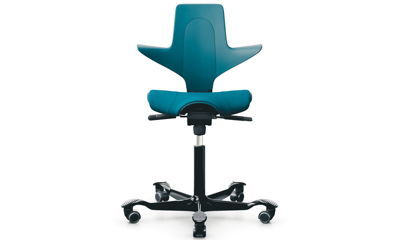 Wesentliche Unterschiede zum HAG Capisco: die Rückenlehne und Sitzfläche bestehen aus Kunststoff. Als Option zusätzlich zum kleinen partiellen Sitzpolster, sorgt eine flächige Sitz-Matte für einen angenehmen Sitzkomfort. Der Einsatzzweck liegt nicht nur im Büro, auch zu Hause, in der Industrie, im Kindergarten und vor allem dort wo nicht ununterbrochen gesessen wird.