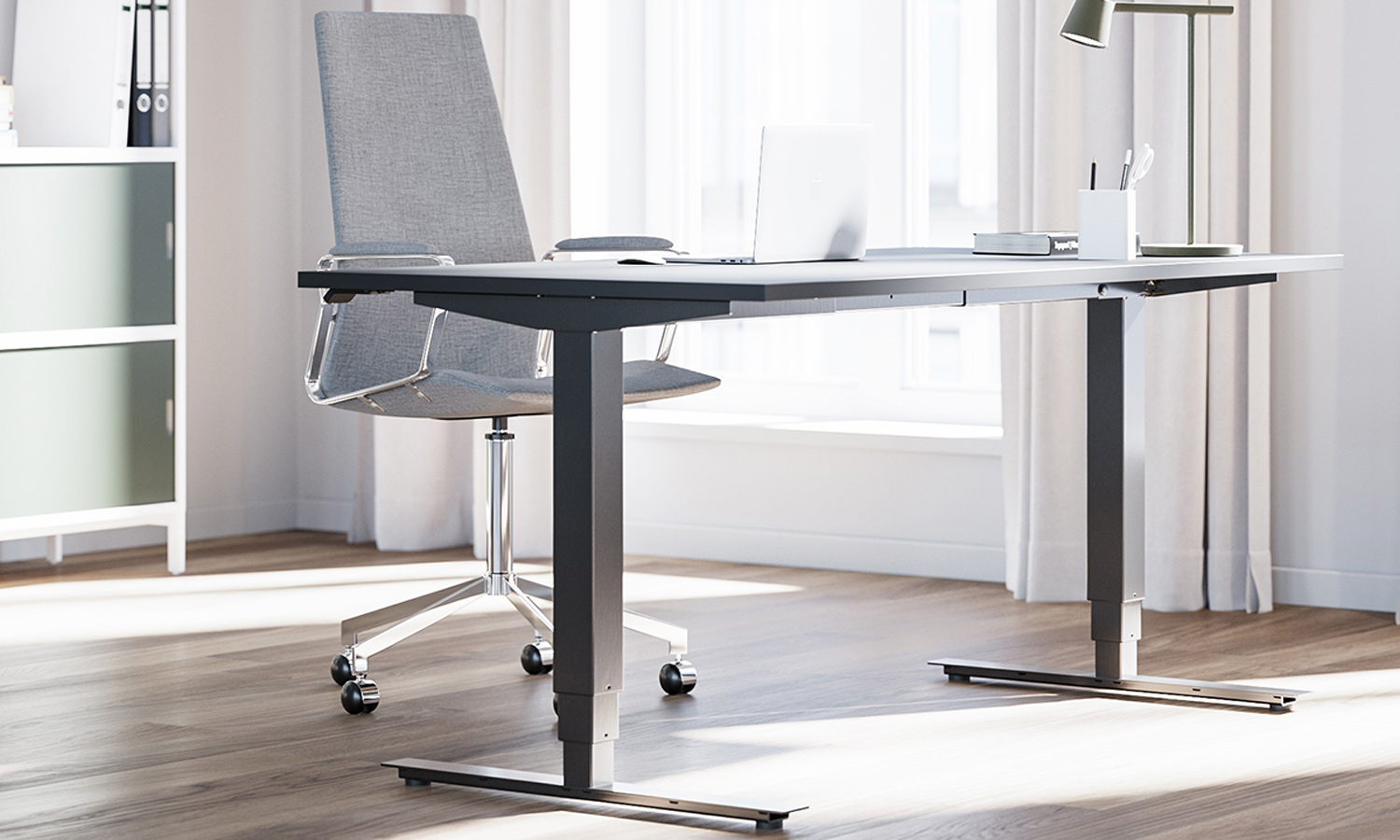 Das breitenverstellbare Gestell sorgt für einen stabilen Schreibtisch, der sich
