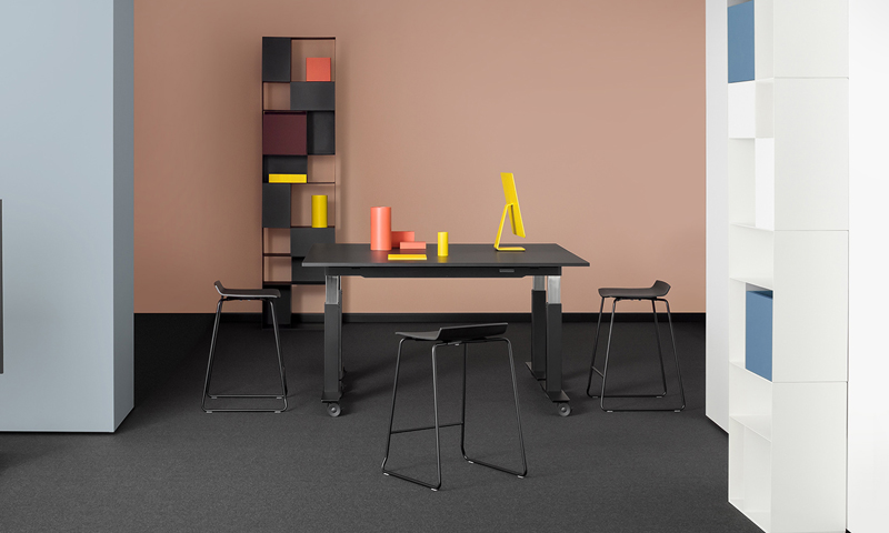 Ein ansprechendes italienisches Design macht den Follow Desk zu einem modernen Steh- Sitz Tisch, der sich mühelos auch in eine private Arbeitsumgebung einfügt.