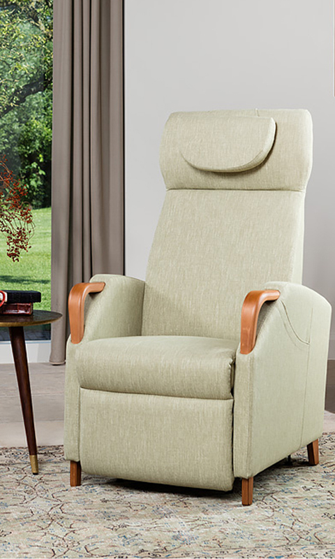 Die individuelle Anpassung des Wellness Maßsessel 520 an die richtige Sitzhöhe, Sitztiefe und Armlehnenhöhe sorgt dafür, dass der Benutzer die optimale Position finden kann. Die Holzhandgriffe sind ein praktisches Detail, dass das Aufstehen und Sitzen erleichtert, selbst wenn die Aufsteh-Funktion nicht genutzt wird.